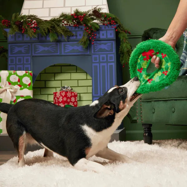 Made with crazy crinkle, super soft fuzz, and T-Shirt rope for tugging and tossing, the Wreath Toss will surely spruce up your next game of fetch! Heave a holly jolly Wreath Toss. It's the best fling of the year!
