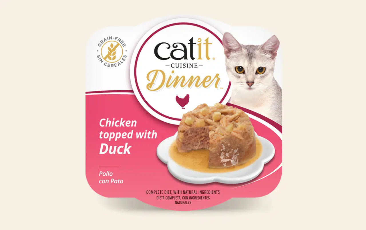 Catit Dinner brings a fresh twist to your cat’s bowl with its distinctive dual-layered format. Each terrine features a smooth base of fresh chicken or fish, topped with a flavourful protein and finished with rich gravy. It’s a delicious mix of textures and tastes your cat will look forward to every day.