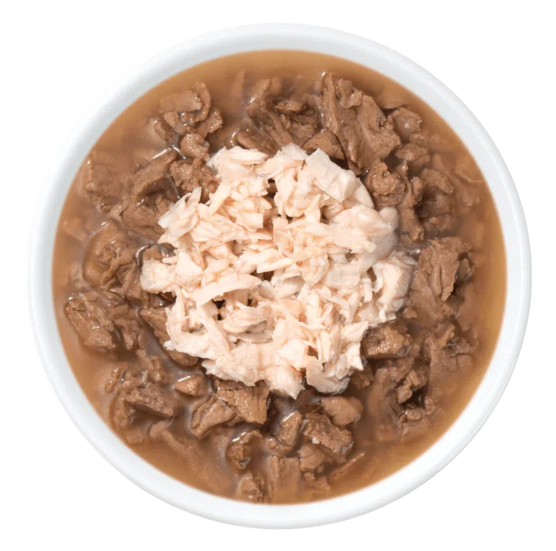Catit Cuisine Duet combines tender Catit Bites with a tasty topping of premium chicken or seafood in a rich gravy, for a luxurious dual-texture meal.